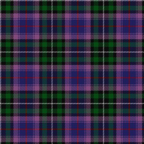 This tartan features a dynamic mix of purple, green, blue, black, red, and white, creating a bold and meaningful design. Deep green represents growth and nature, purple adds a regal elegance, blue conveys depth and calm, and black symbolizes strength. Thin red and white lines enhance contrast, highlighting the intricate pattern. Made from 100% acrylic wool, it offers durability and comfort, perfect for festivals, formal occasions, or everyday wear.