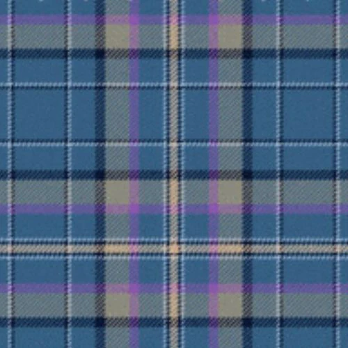 This elegant tartan features a refined blend of soft blue, beige, purple, white, and black tones. The calming blue reflects Scottish skies and waters, while beige adds warmth and balance. Purple introduces a sense of distinction and tradition, white brings clarity and harmony, and black adds depth and definition. The intersecting lines create a graceful pattern that feels both classic and versatile. Woven from 100% acrylic wool, this tartan offers lasting durability and comfortable wear, making it suitable for both formal occasions and everyday Scottish attire.