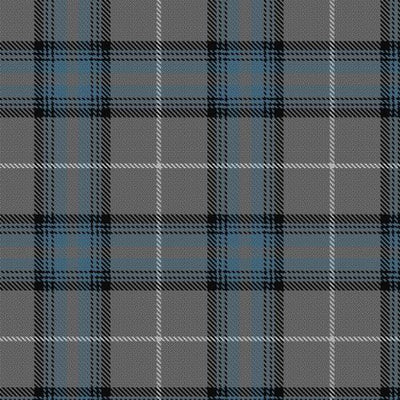 The grey and black tones represent strength, resilience, and historical depth, while light blue accents add a sense of calm and elegance. The brown elements symbolize a connection to the land and natural surroundings, giving the tartan a grounded and traditional appearance.