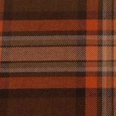 The Down Irish County Ancient Tartan presents a distinctive and elegant color combination of grey, orange, and brown, creating a pattern that feels both traditional and visually striking.