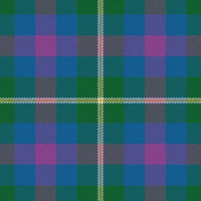 This tartan features a harmonious blend of green, blue, purple, and white lines arranged in a traditional tartan grid. The green tones reflect Scotland’s natural landscapes, while blue symbolizes loyalty and the flowing rivers of the Highlands.