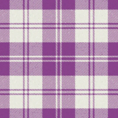 This tartan features a striking combination of purple and white, with alternating squares forming a vibrant, balanced grid. Purple represents creativity, royalty, and spirituality, while white symbolizes purity and peace. Horizontal and vertical stripes of varying widths intersect to create a modern yet classic checkered pattern, blending traditional Scottish tartan design with a contemporary, eye-catching color palette suitable for both formal and casual settings.