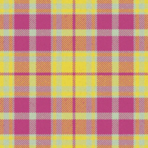This tartan showcases a cheerful blend of vibrant pink, sunny yellow, soft blue, and orange accents.