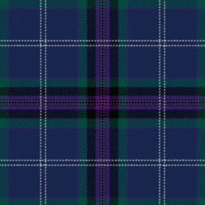 The Heart of Scotland Tartan design features a bold mix of deep navy, green, black, purple, and white tones. Deep navy reflects the surrounding waters of Scotland, while green represents the country’s lush hills and natural landscapes. Black adds a sense of strength and depth, while purple highlights loyalty and nobility. Crisp white lines bring balance and contrast to the overall look.