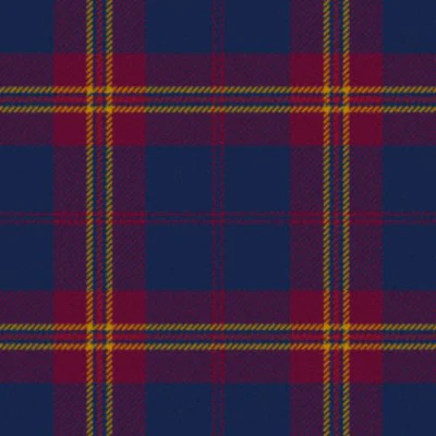 This tartan features a balanced blend of deep navy blue, rich red, and golden yellow, arranged in a classic tartan grid. The navy blue represents loyalty and the vast Scottish skies, while the red tones symbolize strength, courage, and determination.