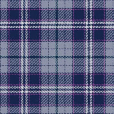 The Historic Scotland Tartan features a refined and balanced color palette of soft grey, deep navy blue, white, green, and subtle purple accents. Each shade reflects an important aspect of Scottish culture and landscape.
