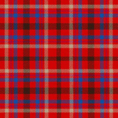 This tartan features a lively combination of red, blue, brown, and beige woven into a traditional check pattern.