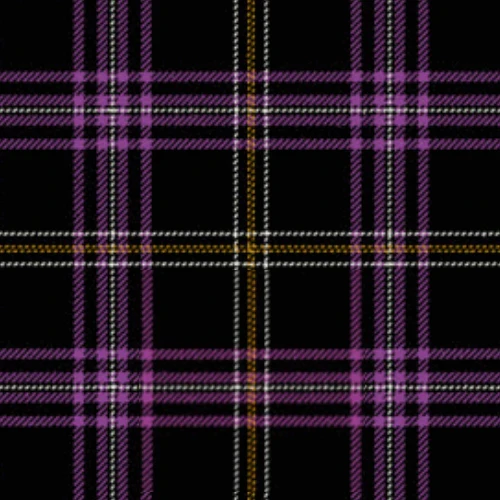 The Payne of Wallins Creek Ancient Tartan presents a striking color palette of black, purple, white, and yellow, artfully interwoven to create a distinguished grid pattern.