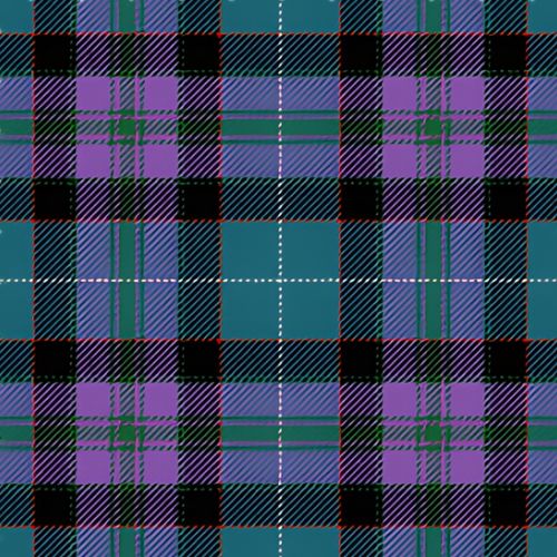 The Western Isles Ancient Tartan features a striking combination of teal, purple, black, and green, arranged in a classic plaid design, accented with touches of white and red to create a distinctive tartan pattern. The teal mirrors the coastal waters of the Western Isles, purple evokes royalty and creativity, black adds elegance, and green represents the natural landscapes. Woven from premium 16 oz acrylic wool, this tartan is both comfortable and durable, lightweight yet sturdy, making it perfect for daily wear, special occasions, or cultural events.